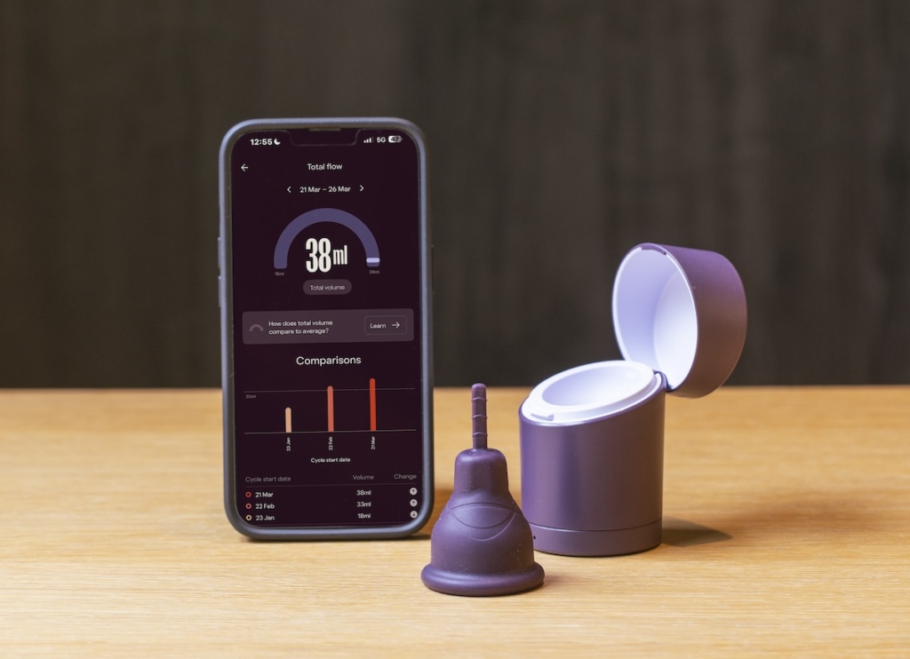 The device combines medical-grade silicone with ultra-thin sensors to measure menstrual flow volume and track cycle metrics including duration, frequency, and regularity. The connected app collates baseline data over time, allowing users to identify patterns and track their menstrual health.